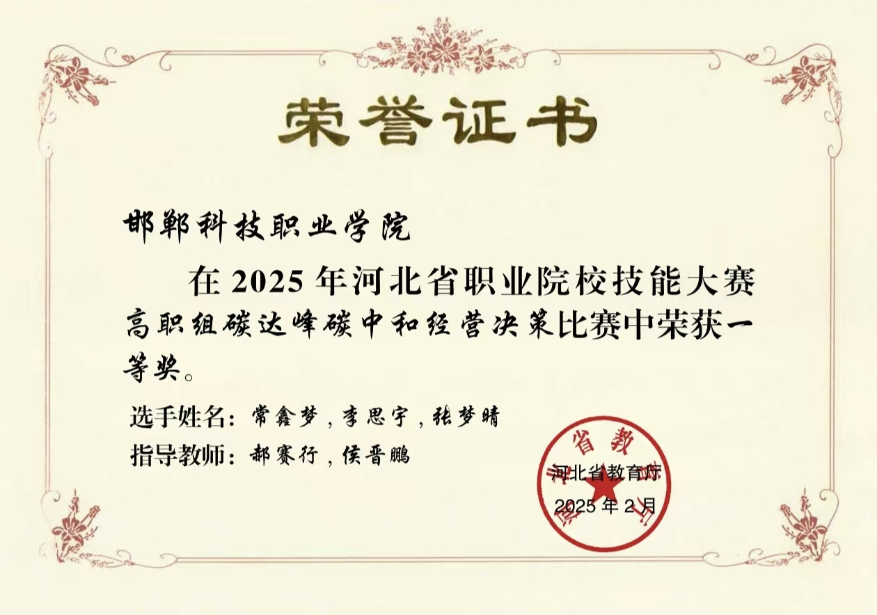 涵盖财务流程自动化、数据分析报告及系统操作熟练度等。学生获得财务模拟决策河北省一等奖。