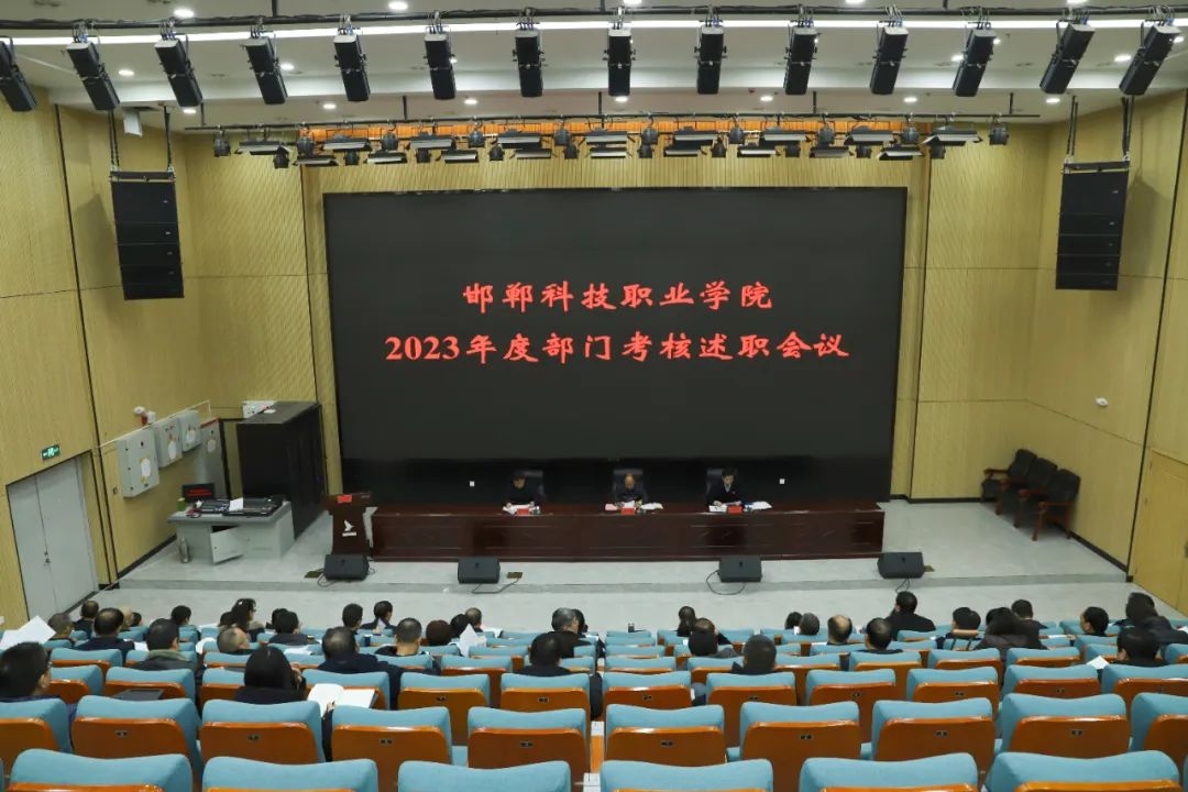 1月18日上午,学院在邯郸职教城国际学术交流中心一楼报告厅召开2023年度部门考核述职会议。党委书记杨万春出席并讲话,党委副书记、院长李鹏丽主持会议。党委领导班子全体成员出席会议。