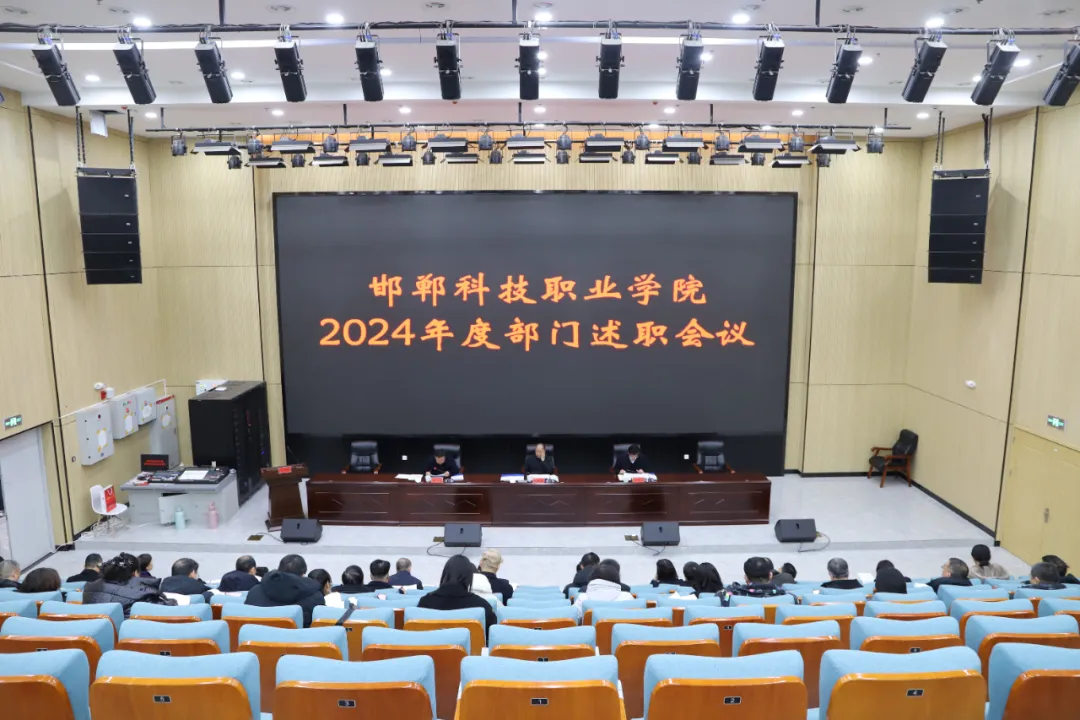 1月11日,学院在邯郸职教城国际学术交流中心一楼报告厅召开2024年度基层党支部和部门述职会议。党委书记杨万春出席并讲话,党委副书记、院长李鹏丽主持会议。党委领导班子成员出席。