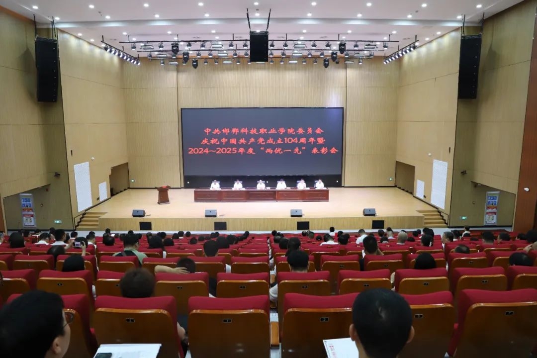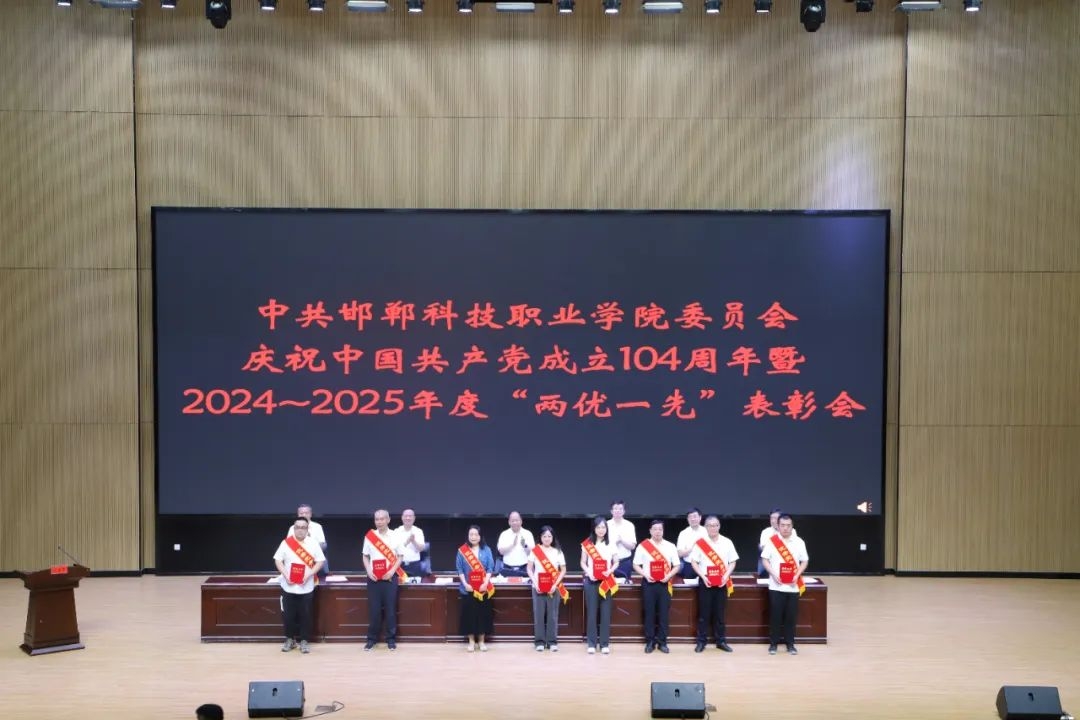为表彰先进典型、凝聚奋进力量,激励全院各级党组织和党员在高质量发展新征程中担当作为,6月25日,点点官方app下载在邯郸职教城国际学术交流中心二楼报告厅隆重召开庆祝中国共产党成立104周年暨“两优一先”表彰会。会议对2024-2025年度52名优秀共产党员、17名优秀党务工作者和3个先进党支部进行集中表彰。学院党委书记杨万春出席并讲话,党委副书记、院长李鹏丽主持,党委领导班子成员出席。