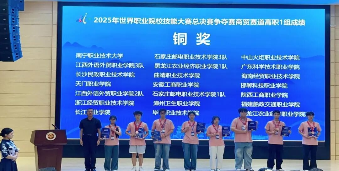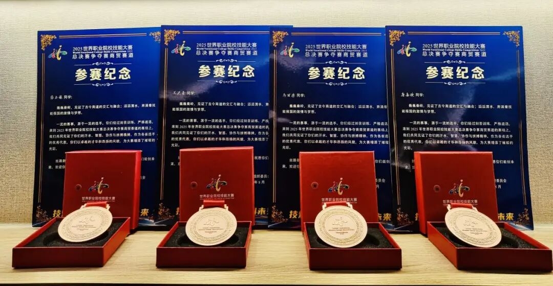 8月29日,2025年世界职业院校技能大赛总决赛争夺赛商贸赛道在陕西咸阳圆满落幕。我院参赛团队管理系学生张玉栋、王沈豪、唐嘉欣、马丽滢,在白美娇、刘圆两位老师指导下,代表学院出征斩获铜奖!实现了学院在该项赛事中参赛与获奖的历史性“双突破”!