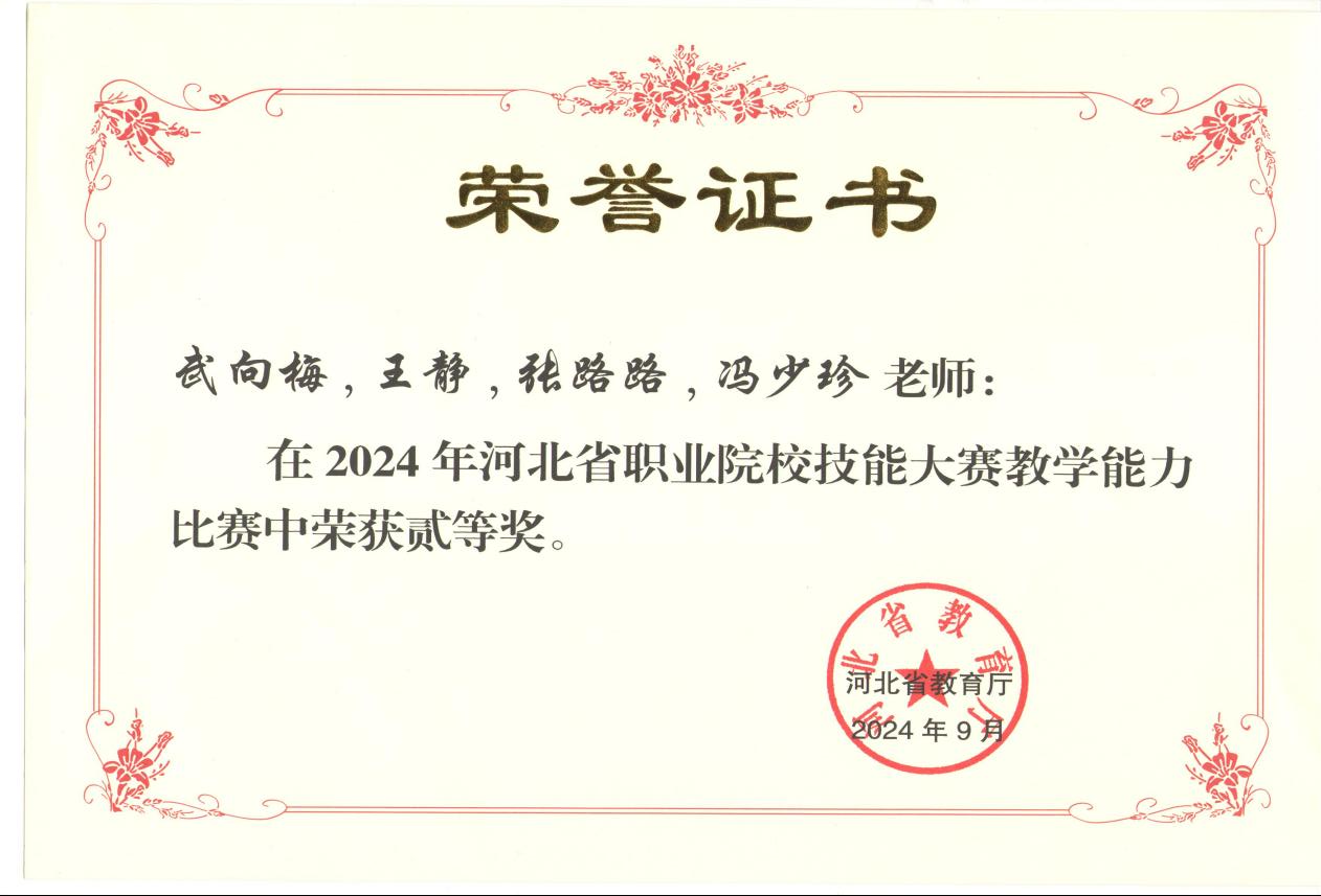 在师资队伍方面。马克思主义学院拥有一支政治可靠、能力过硬、结构合理、朝气蓬勃、锐意创新的高素质思想政治理论教师队伍。现有思政专职教师20人、兼职教师26人,其中具有正高职称教师4人、副高职称教师8人,拥有硕士研究生及以上学历教师24人。专兼职教师均具备扎实的马克思主义理论知识和丰富的思想政治教育教学经验,在学院的着力培养中逐步形成了以中、青年教师为主体,老中青三结合的教师人才梯队。涌现出河北省德育先进工作者、第七届河北省大学生微电影展示优秀指导教师、邯郸市优秀教师、邯郸市最美思政课教师、邯郸市优秀班主任等优秀人才,部门教师还荣获了“中教杯”国赛教案组一等奖、河北省职业院校技能大赛教学能力比赛二等奖等奖项。