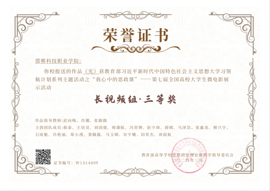 思政课教师获得河北省大学生微电影展示活动