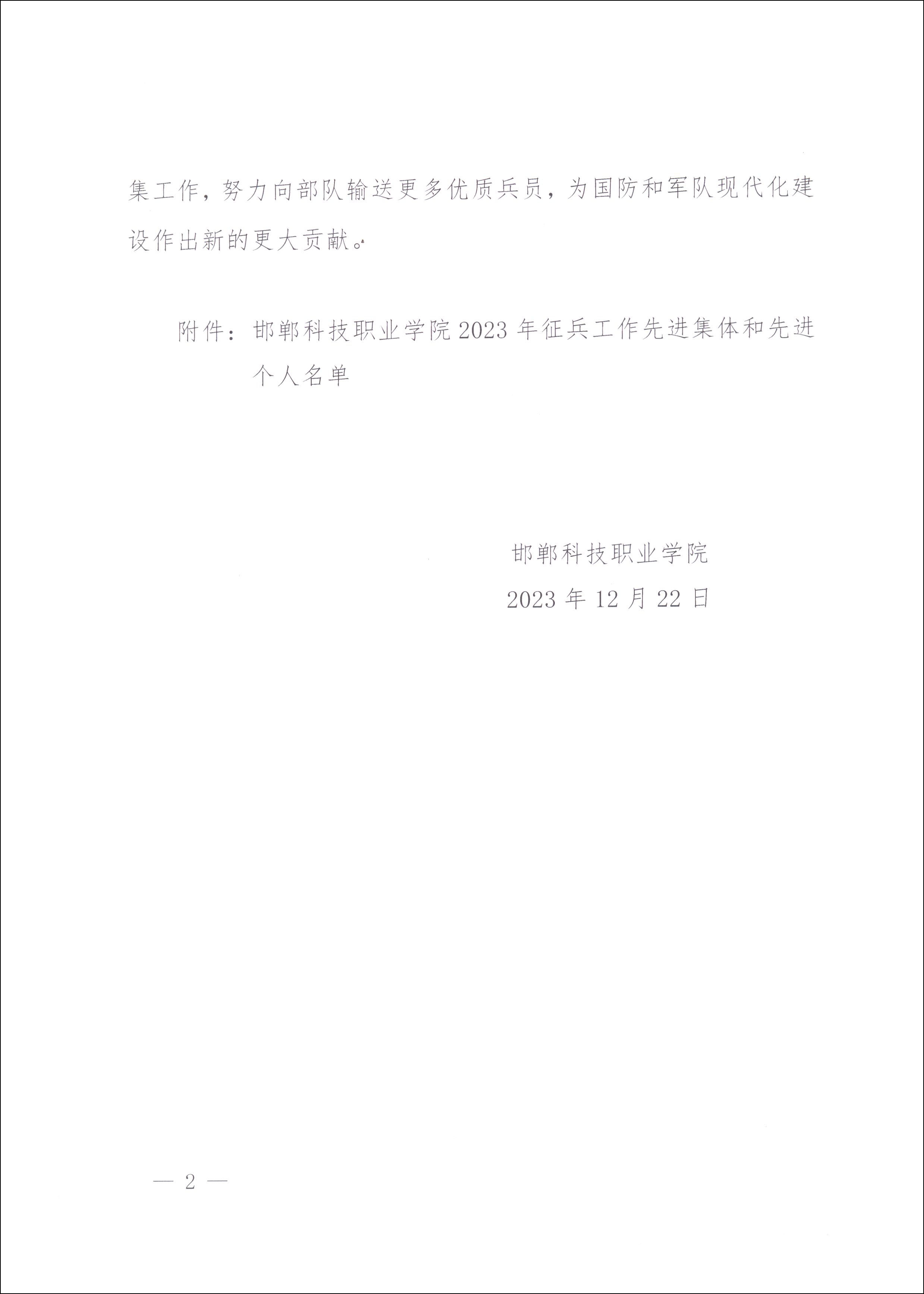 学院武装部部长赵芳同志宣读了2023年征兵工作先进集体和先进个人名单,并希望受表彰的先进集体和先进个人珍惜荣誉,再接再厉,不断取得新成绩。其他各系及辅导员要以先进为榜样,做好2024年新兵征集工作,努力向部队输送更多优质兵员,为国防和军队现代化建设作出新的更大贡献。