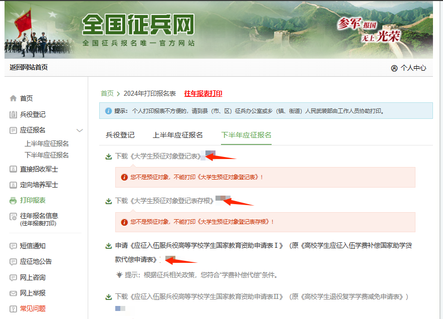 11.报名后,显示应征青年下载打印相关表格,我需要填写哪些?